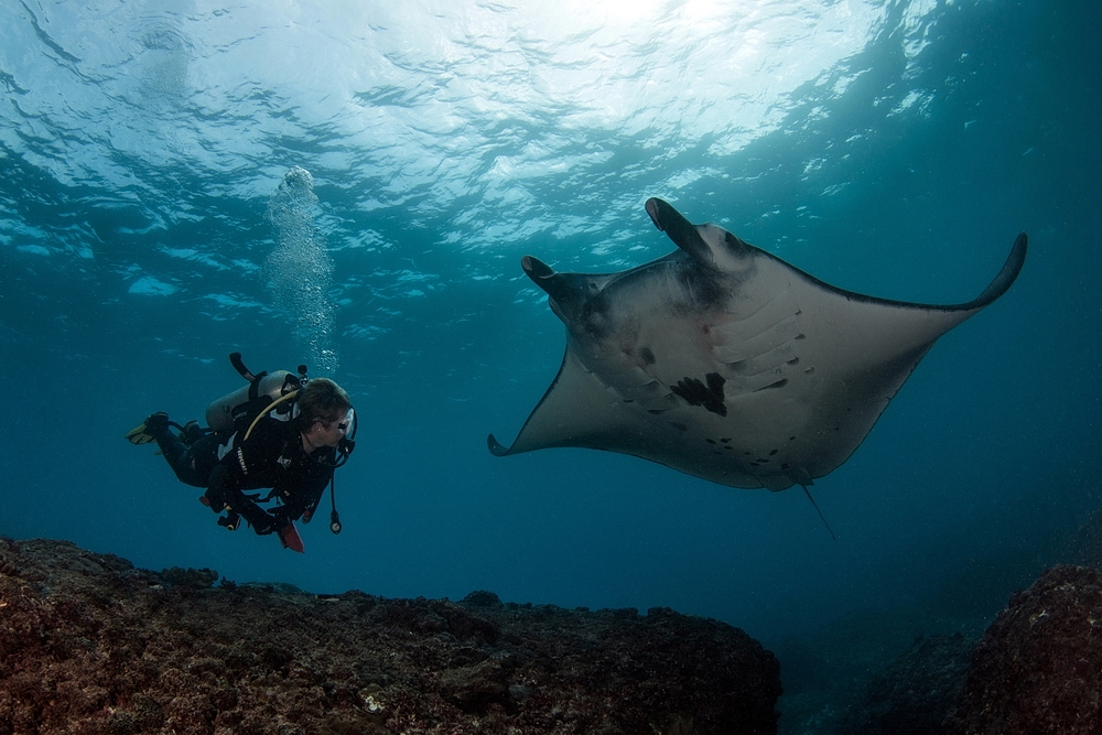 Nusa Penida je unikátní v tom, že lze téměř garantovat setkání se dvěma druhy ryb (paryb), které patří k největším živočichům v moři. Kromě měsíčníka je to Manta útesová - Manta alfredi.
