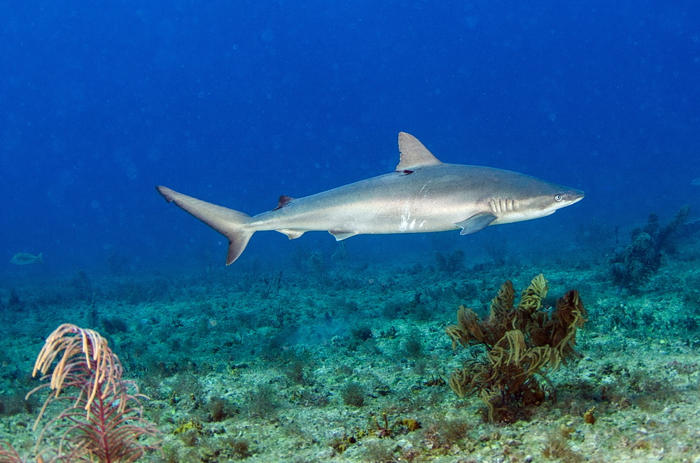 Asi si říkáte, proč tahle blbá fotka. Ale je na ní Žralok černonosý - Carcharhinus acronotus!!!