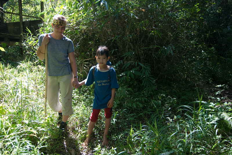 šel celou cestu bos, příležitostně šplhal s neuvěřitelnou hbitostí na vysoké stromy a shazoval nám divoké ovoce. Moc dobré.