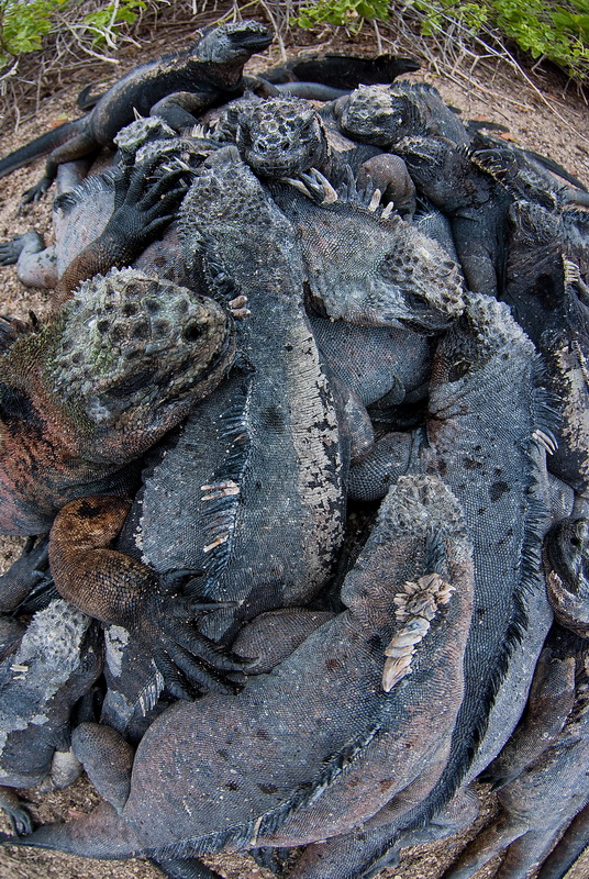 Amblyrhynchus cristatus - Leguáni navečer vytvoří klubko a bojují tak proti nočnímu chladu
