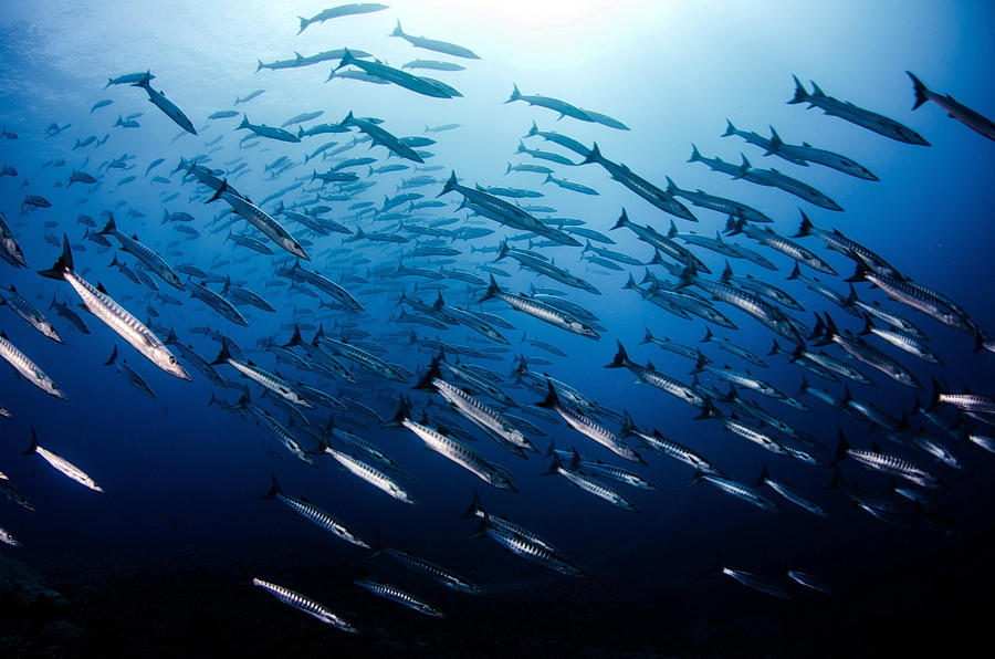 Na druhém ponoru narážíme na velké hejno barakud. Ale nejsou to ty malé hejnové barakudy z jiných moří. Jsou metr a půl dlouhé a vůbec se nebojí, naopak se kolem nás se zájmem točí.