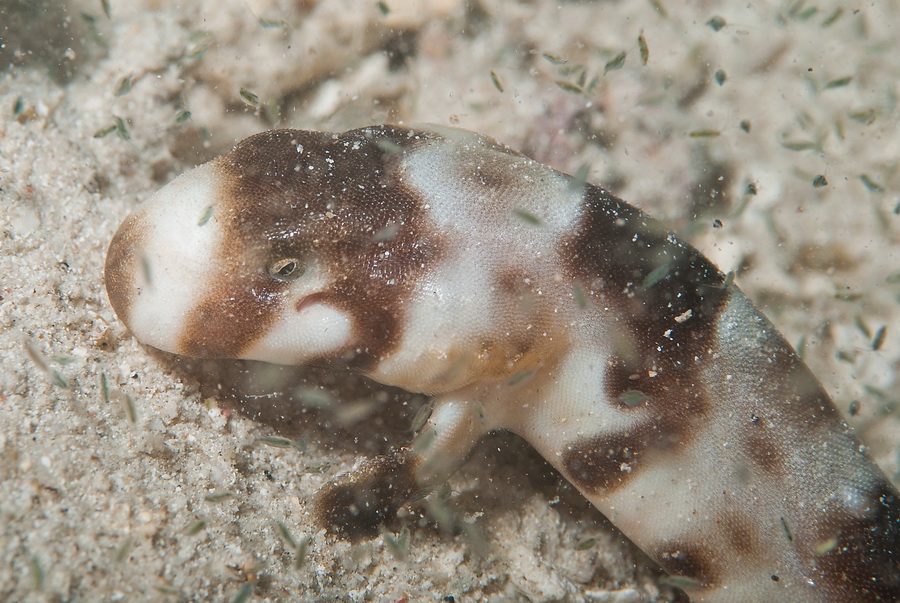 Chiloscyllium punctatum - Brownbanded Bambooshark, velmi čerstvé mládě. Netřeba dodávat, že jsem ho viděl poprvé v životě. Prostě Raja Ampat